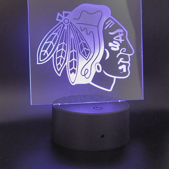 Desktop LED light up Blackhawks logo sign